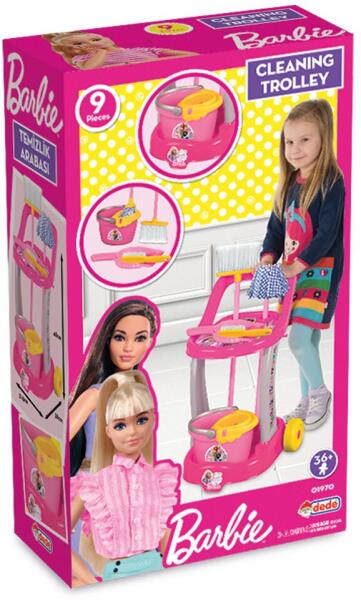 Barbie játékkészlet - Takarító kosár Egy kocsi tisztítótartozékokkal különböző Barbie modellekben. A csomag tartalma:- 1x felmosó- 1x vödör- 1x seprű- 1x fényszóró- 1x ecsetAjánlott életkor: 3 év+.